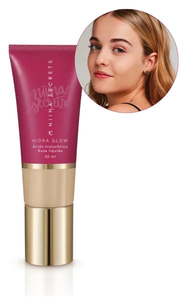 Pele radiante e hidratada com a sofisticação da Niina Secrets. ✨ A Base Hidra Glow combina cobertura perfeita com ácido hialurônico, deixando um viço natural e profissional o dia todo. O segredo para um rosto iluminado e saudável. 💎💖